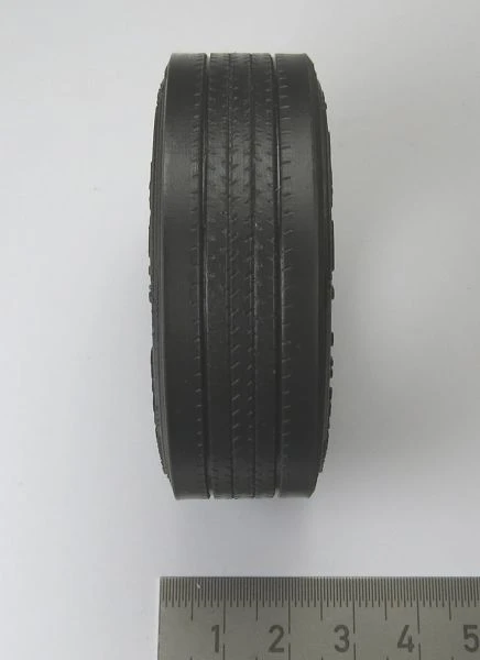 1 Lowliner-Reifen 385/65R22,5. Voll- Reifen. Da=65mm Di=39mm, 19/23mm breit. Für alle 40mm-Breitfelgen mit Mittel- führung geeignet! Für Vorderachse oder Trailerachse. Wedico-Maßstab!