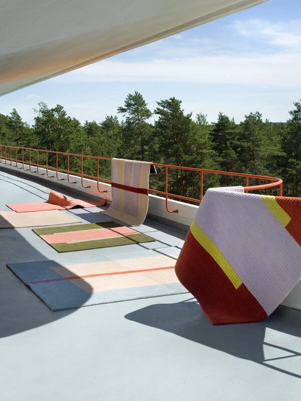 Das Designduo Juslin Maunula schöpfte wie für alle seine Arbeiten die Inspiration für das Design des Ametisti-Teppichs aus dem Bereich der Mode und der Architektur: plissierte Stoffe und geriffelte Steine und Fliesen. Das taktile Design wird nicht nur durch die kräftige Farbwahl, sondern auch durch das Gesamtlayout unterstrichen: Die Komposition der Farbblöcke hebt die Richtung der Falten hervor. Darüber hinaus ist das Design von den Werken des Farbtheoretikers Josef Albers und des Architekten Carlo Scarpa geprägt, der auch den Namen des Teppichs beeinflusste: „Ametisti“ ist das finnische Wort für „Amethyst“, ein Stein, den Scarpa in seinen Entwürfen häufig verwendete.