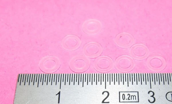 Dichtung M 3 (10 Stück). Für alle Einschraubnippel mit M3-Gewinde 0H053. Außendurchmesser: 5mm, Stärke: 0,35mm.