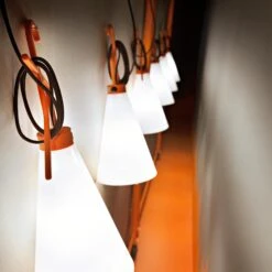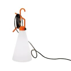 Mayday – die Allzweckleuchte für Haus, Keller, Garage oder Garten. Den kombinierten Griff mit Aufhänger und Kabelaufwickler gibt es in den Farben Orange, Schwarz und Weiß. Dank 4,85m Kabel und nur 900g Gewicht beleuchtet diese kegelförmige Designlampe spielerisch alle Ecken und Winkel, je nachdem, wohin sie ihren Spot richten möchten. Der opalfarbene Diffusor und der Leuchtengriff werden aus widerstandsfähigem Polypropylen gefertigt.