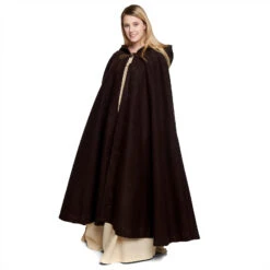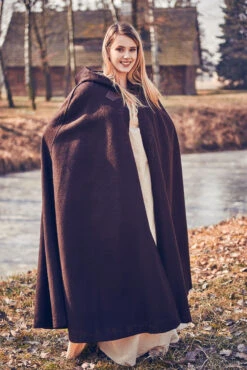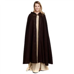 Produktinformationen “Mittelalter Woll Umhang Damen mit Kapuze Stickerei Metallschließe braun”