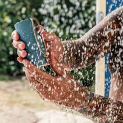 Das InnoLab-Produkt Ocean Mylly bietet die Lösung: Hierbei handelt es sich um eine leichte und handliche Seifenmühe, die nach einem ähnlichen Prinzip wie eine Salz- oder Pfeffermühle funktioniert. Befüllt mit einem Stück Naturseife, können kleine Seifenflocken gemahlen werden. Diese lassen sich gut aufschäumen, wenn sie in Kontakt mit Wasser kommen. Die Seife bleibt hygienisch und trocken.
