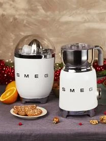 Die Smeg Zitruspresse ist mit ihrem eleganten Design ein Blickfang für jede Küche. Sie wird inklusive Filtersieb, Anti-Tropf-Auslauf mit Klappverschluss, Saftkammer und Schutzabdeckung geliefert.