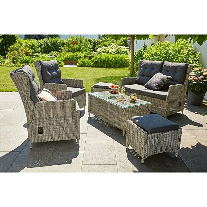 Sunfun Gartenhocker 50 X 45 X 37 Cm, Polyrattan, Grau