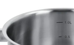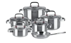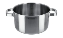 Mit dem Topfset Focus von Meisterkoch zaubern Sie im Handumdrehen leckere Mahlzeiten. Zu dem Set gehören fünf Töpfe in unterschiedlicher Größe und eine Bratpfanne. Alle Töpfe werden mit passendem Glasdeckel geliefert, die Pfanne hat keinen Deckel. An der Innenwand der Töpfe befindet sich eine praktische Innenskalierung, auf der Sie die Literzahl ablesen können. Das Set besteht aus hochwertigem Edelstahl.