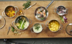 - Lieferumfang / mitgeliefertes Zubehör: 1x Fleischtopf ø 16cm, 1x Fleischtopf ø 20 cm, 1x Bratpfanne ø 24 cm, 1x Fleischtopf ø 24 cm, 1x Bratentopf ø 16 cm, 1x Bratentopf ø 20 cm