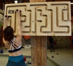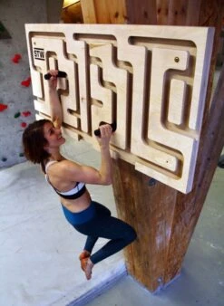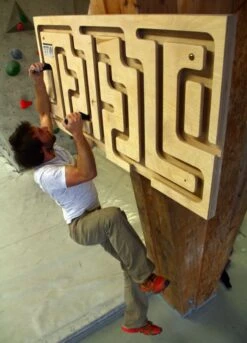 Als Wandpanel wird das Labyrinth einfach und schnell in wenigen Minuten an jeder Wand festgeschraubt. Empfehlenswert ist ein ca. 40 cm Abstand zur Wand. Somit kann nach Anbringung von Tritten sowohl freihängend, als auch mit Fußunterstützung trainiert werden.