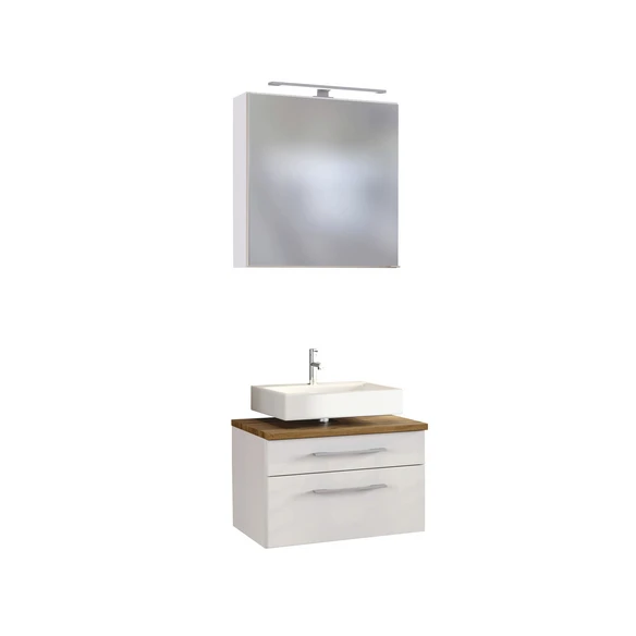 HELD MÖBEL Unterbecken-Set »Davos«, BxHxT: 60 x 200 x 47 cm, Waschtisch 60, 1 Schubkasten 1 Auszug mit Softclose – Funktion, Spiegelschrank 60, inkl. LED – Aufbauleuchte, Made in Germany, Maße (B/H/T): 60/200/47 cm, Abdeckplatte in MDF inkl. Siphonausschnitt (B/T): 81/195 mm