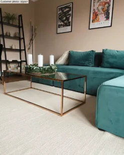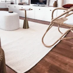 Flach gewebter Teppich aus Wolle. Wollteppich mit einem schönen Schnitt. Einzigartige Qualität. Leicht zu bewegen. Liegt fixiert und flach auf dem Boden. Vermittelt ein Gefühl der Herkunft.