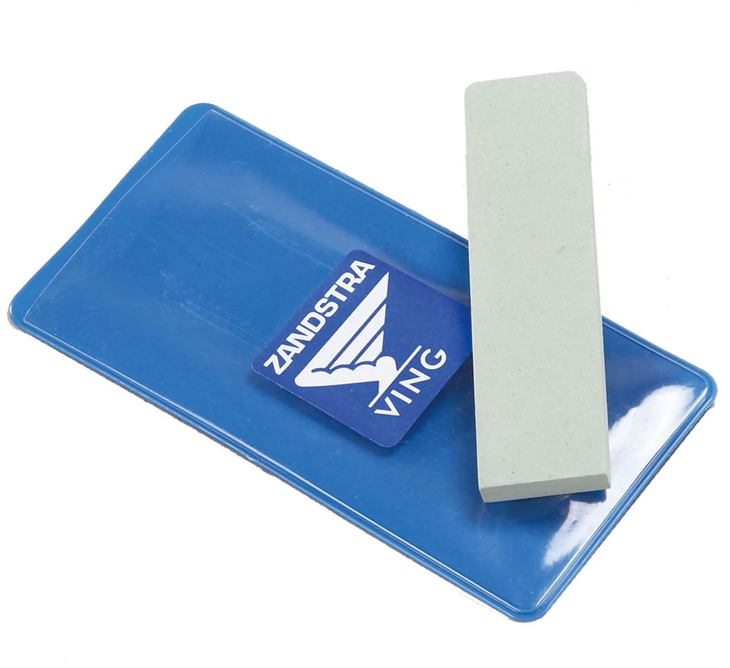 De kwaliteit van de Zandstra Pocket Steen is Sillicium Carbide. De pocketsteen zit in een handig etui. De Pocketsteen is ideaal om een goed geslepen ijzer na het inrijden op de baan voor de wedstrijd nog even te behandelen.